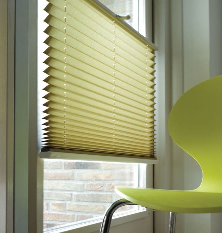 - Классический. Более глубокие, горчичные или золотистые оттенки желтого помогут создать теплую и элегантную атмосферу. Желтые жалюзи плиссе хорошо сочетаются с натуральным деревом и традиционной мебелью.